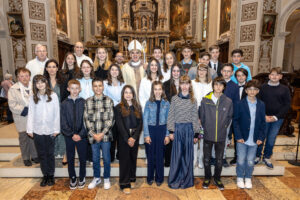 I ragazzi molto emozionati, sostenuti dai rispettivi padrini e madrine, accompagnati dalle calde note del coro, hanno ricevuto dalle mani del vescovo il Sigillo dello Spirito Santo.