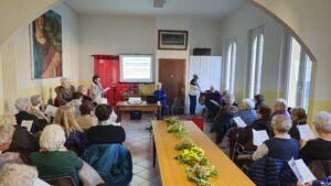 Dopo il momento di preghiera, è seguito il momento formativo a cura di Gianni Bezzi, dal titolo: “El Trentin de na volta e quel de ades”. Gianni Bezzi ci ha fatto una panoramica del Trentino del Novecento, dal dopoguerra al boom economico, come eravamo e come siamo dal punto di vista sociale ed economico, con riferimenti storici e politici.