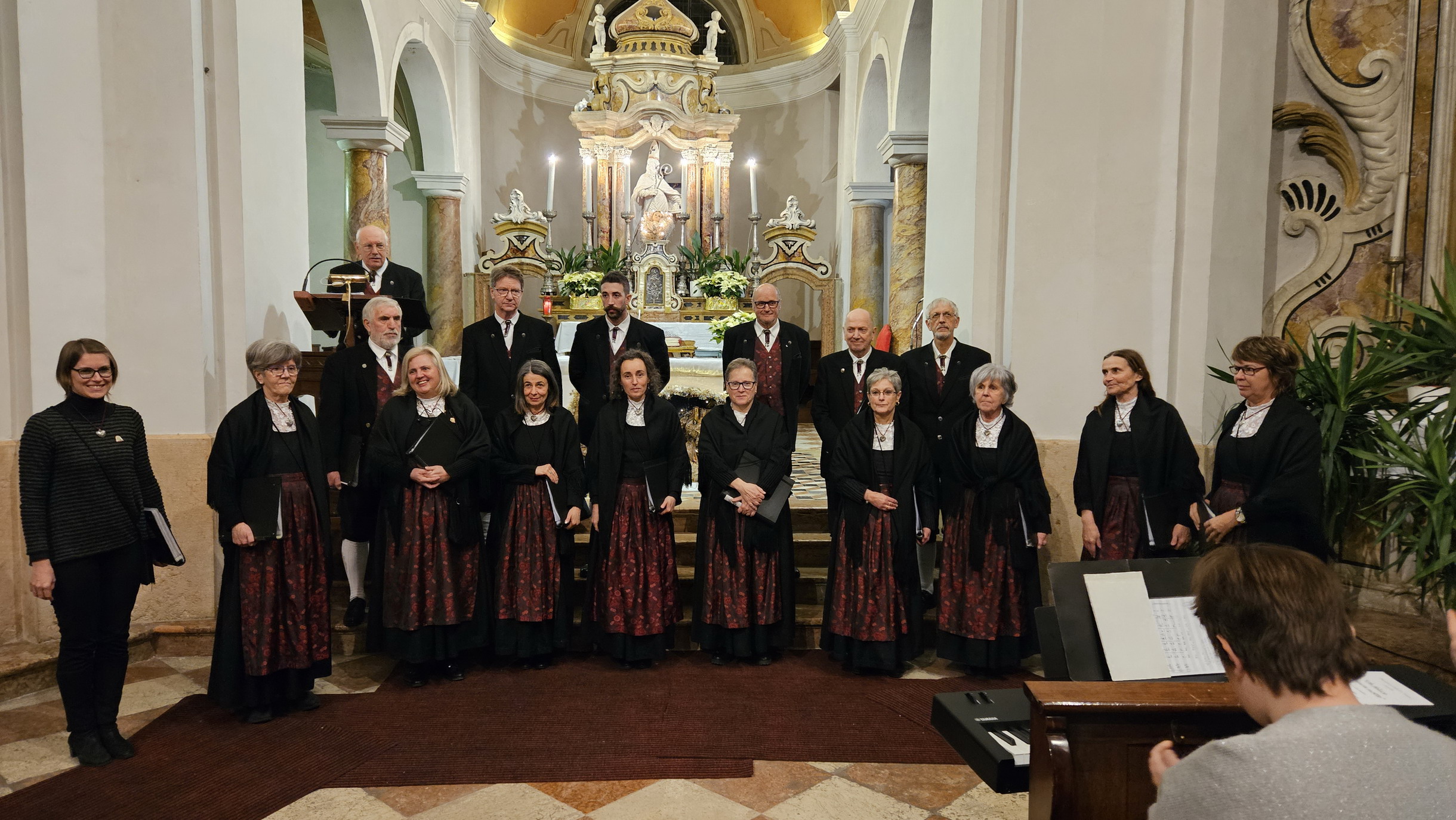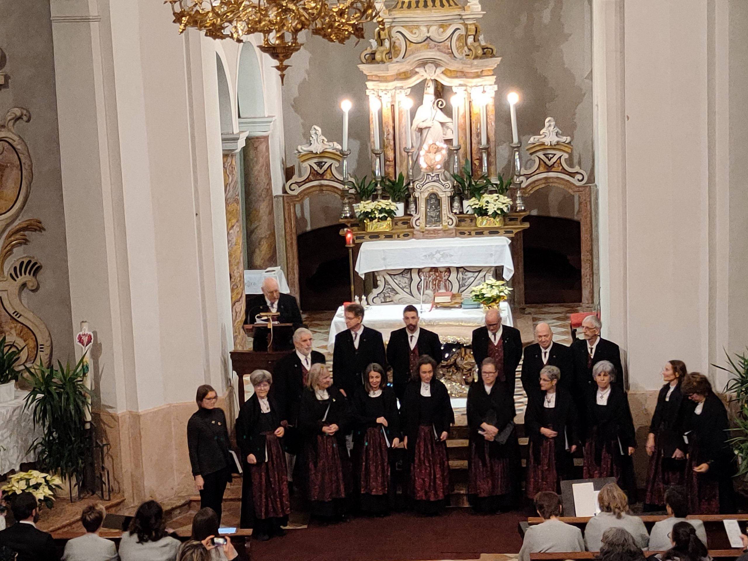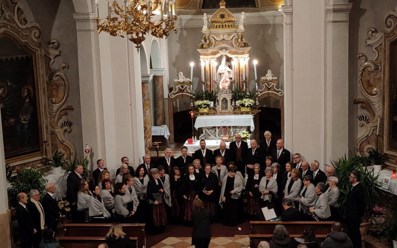 I due cori, composti da voci maschili e femminili, hanno spaziato dai canti della tradizione cristiana antica in lingua latina a quelli del mondo anglosassone,  tedesco e sudamericano, senza dimenticare compositori nazionali e locali. Interessante l’inserimento in canti tradizionali, di strofe in lingua cimbra, da parte della corale di Luserna.