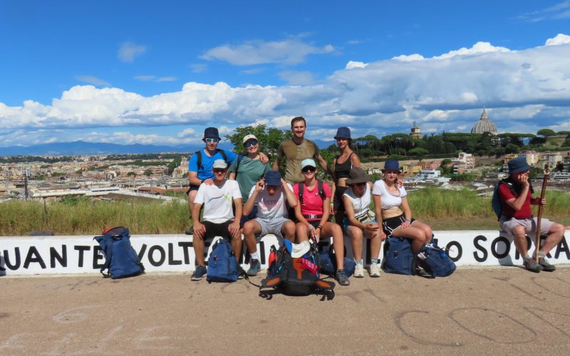 Durante una pausa abbiamo anche conosciuto la comunità di Nomadelfia, che si è fatta conoscere tramite una testimonianza e che ci ha lasciato pranzare nel loro cortile che aveva una vista su Roma.