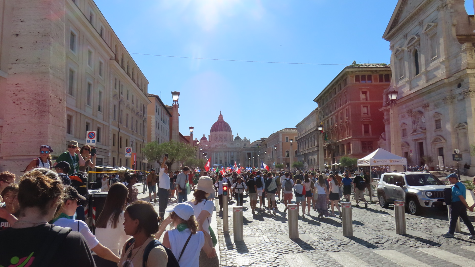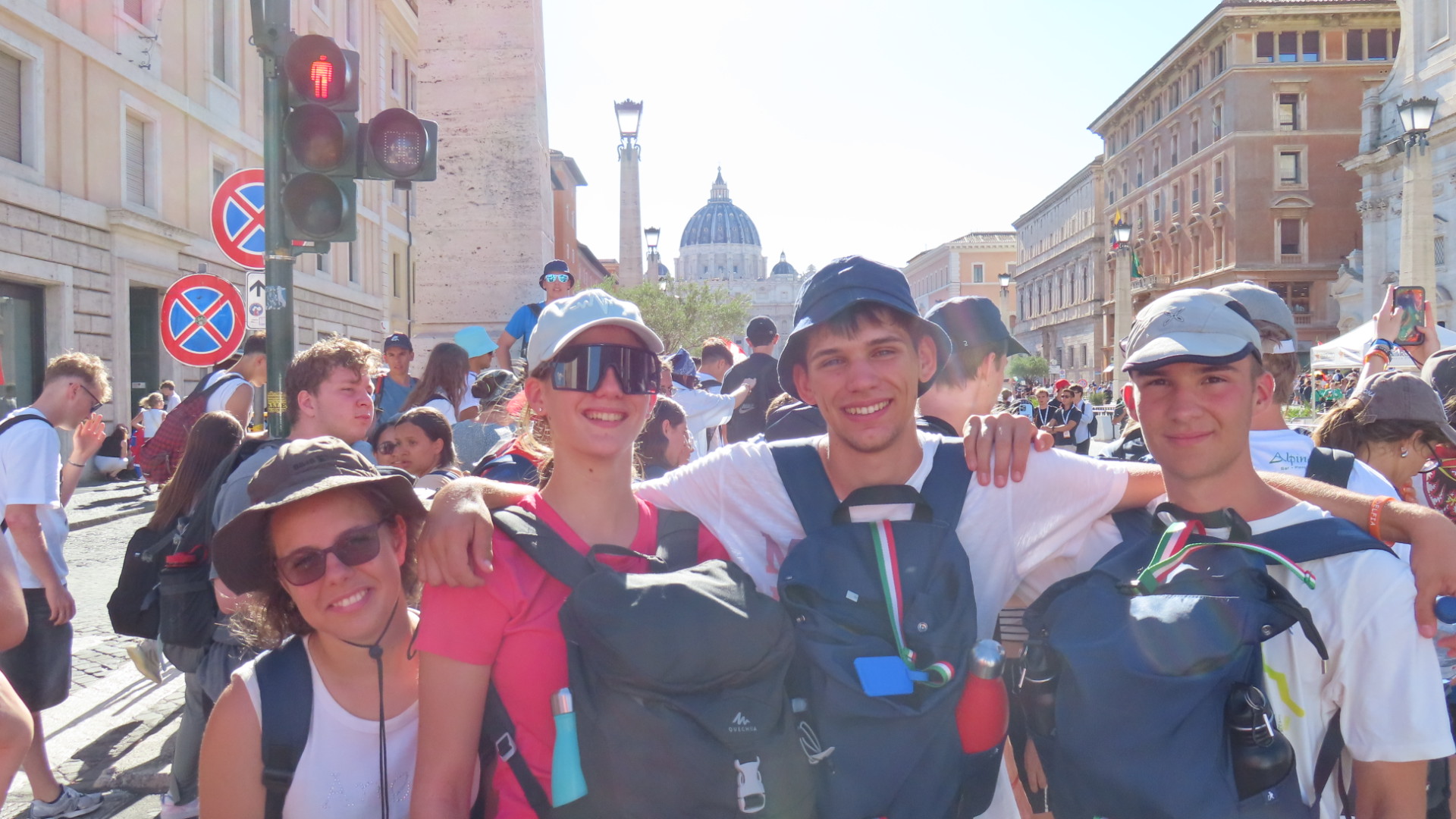 Un’oretta e mezza dopo abbiamo varcato le porte della Cottà Eterna, costeggiato le mura vaticane e incontrato molti giovani da tutto il mondo che erano venuti per il giubileo. Bandiere da tanti paesi, cori e tanta allegria!