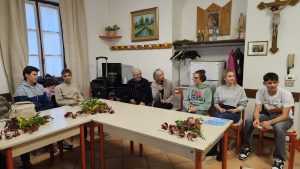 Il tema dell’incontro: ci narriamo piccoli momenti sereni, vissuti questa estate.  Con gioia erano presenti 5 giovani accompagnati da don Francesco e da Ines. Questi giovani hanno partecipato con don Francesco, al Giubileo a Roma.