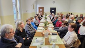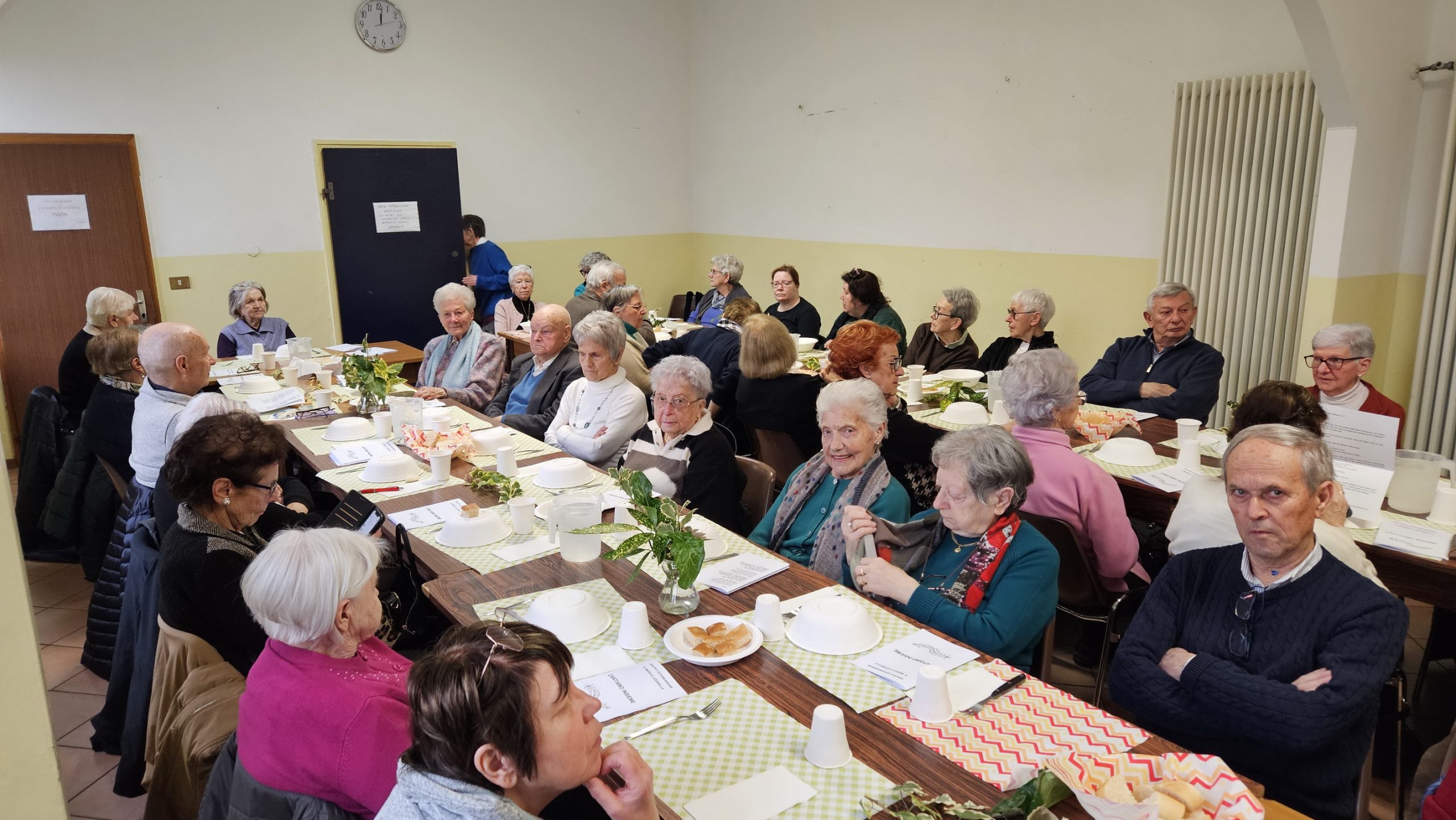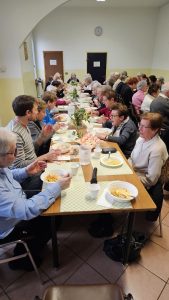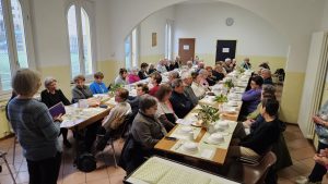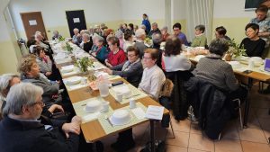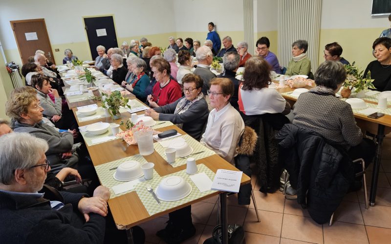 Ci siamo trovati in sala comunità dell’oratorio di S. Maria, mercoledì 4 febbraio ad ore 11.30 e dopo il momento di preghiera, con raccoglimento e meditazione, è arrivato il momento del pranzo conviviale. La sala era gremita di persone e le due lunghe tavolate, erano ben apparecchiate con addobbi floreali.
